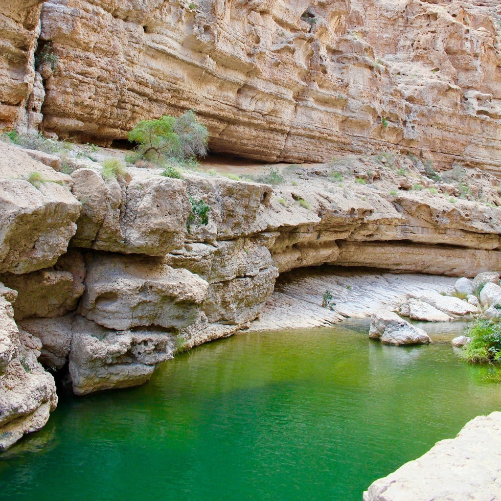 En-route to the desert, stop at Wadi Bani Khalid for swimming in turquoise pools.